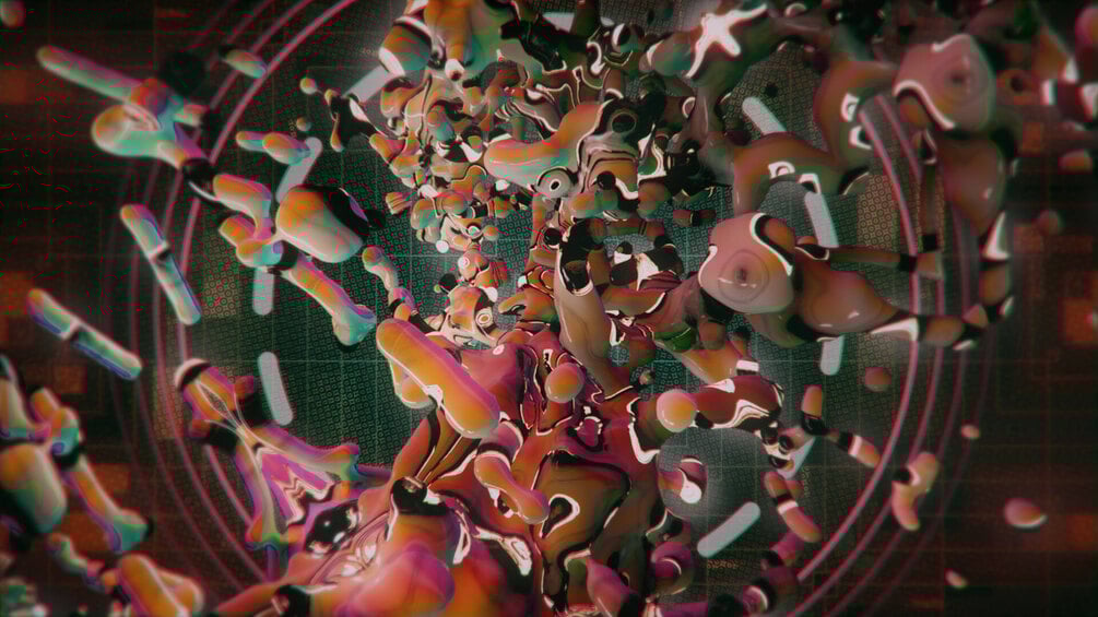 120 bpm VJ Loop featuring fluid simulation in a tropical glitch setting.