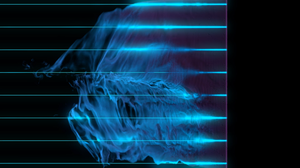 4K clip of 3d simulated smoke, with lighting synced to 120bpm